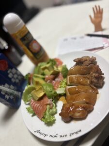 クリスマスに、息子が「サンタさんにご飯を作りたい!」と言ってくれたので、照り焼きとサラダを一緒に作りました🍽️